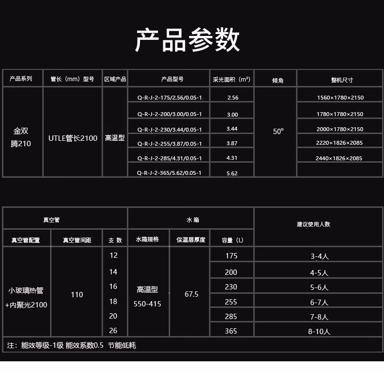 皇明太阳能热水器 冬冠180系列